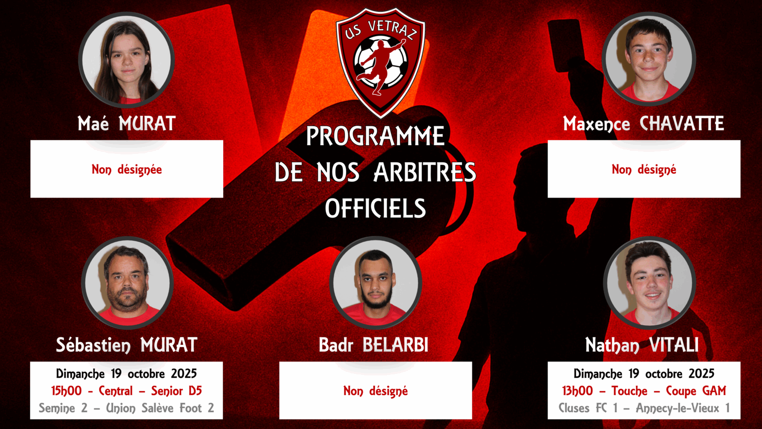 Programme de nos arbitres officiels